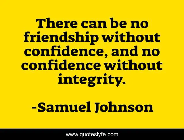 This page presents the quote "There can be no friendship without confidence, and no confidence without integrity.". Author of this quote is Samuel Johnson. This quote is about friendship, confidence, integrity,.
