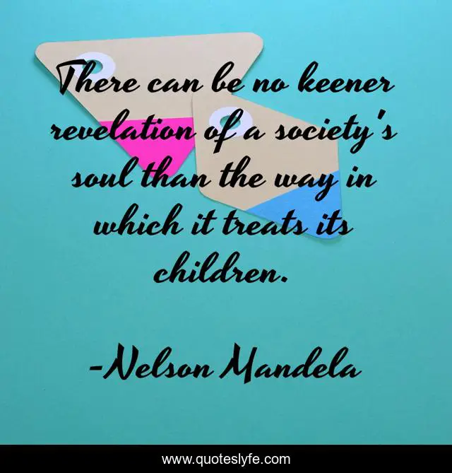 This page presents the quote "There can be no keener revelation of a society's soul than the way in which it treats its children.". Author of this quote is Nelson Mandela. This quote is about children, way, soul,.