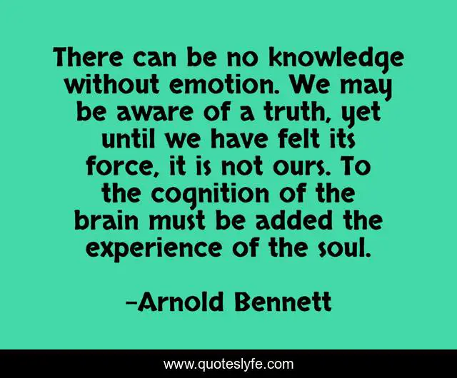 "Arnold Bennett Quotes." Quoteslyfe.com, 2025. Fri. 05 Dec. 2025. <https://www.quoteslyfe.com/quote/There-can-be-no-knowledge-without-emotion-87920>.