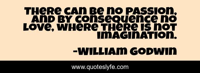 This page presents the quote "There can be no passion, and by consequence no love, where there is not imagination.". Author of this quote is William Godwin. This quote is about no love, passion, affection, love,.