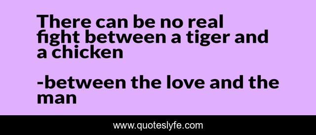 This page presents the quote "There can be no real fight between a tiger and a chicken". Author of this quote is between the love and the man. .