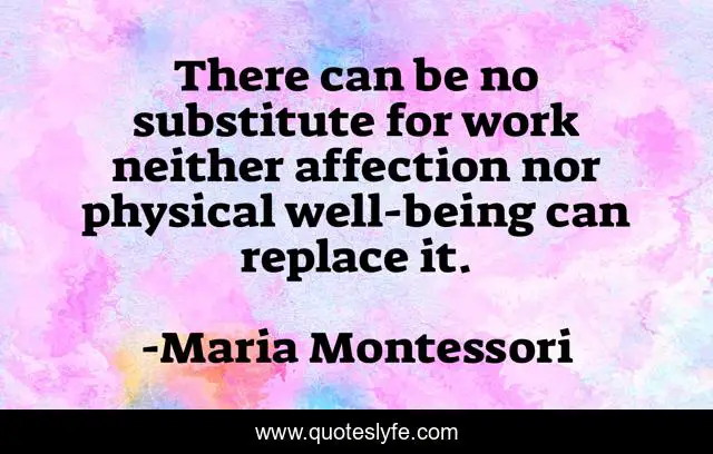 This page presents the quote "There can be no substitute for work neither affection nor physical well-being can replace it.". Author of this quote is Maria Montessori. .