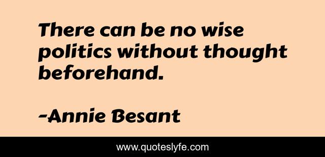 This page presents the quote "There can be no wise politics without thought beforehand.". Author of this quote is Annie Besant. This quote is about thought, without, wise,.