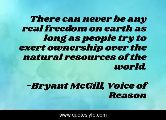 There can never be any real freedom on earth as long as people try to exert ownership over the natural resources of the world.