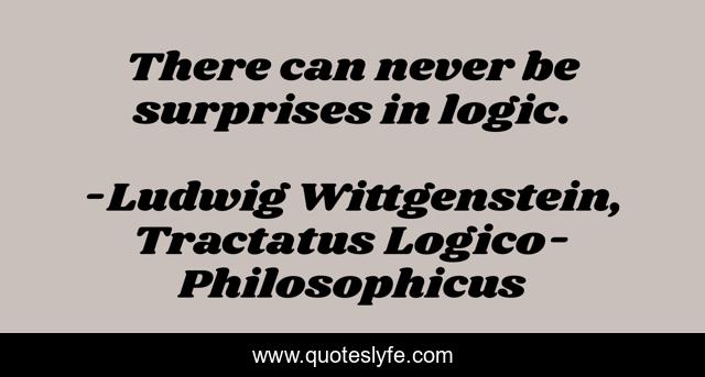 This page presents the quote "There can never be surprises in logic.". Author of this quote is Ludwig Wittgenstein, Tractatus Logico-Philosophicus. This quote is about surprise, logic,.