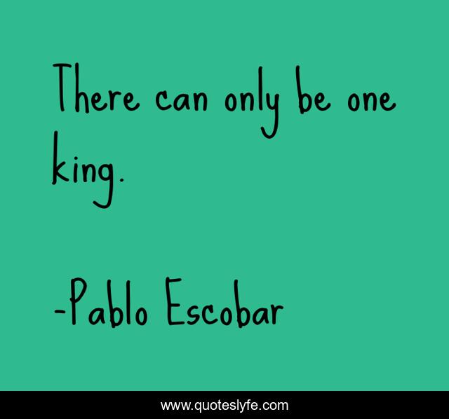 This page presents the quote "There can only be one king.". Author of this quote is Pablo Escobar. This quote is about drugs, real-world, drug-lor, inspirational, enthusiasm,.