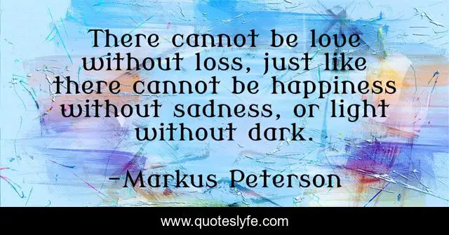This page presents the quote "There cannot be love without loss, just like there cannot be happiness without sadness, or light without dark.". Author of this quote is Markus Peterson. This quote is about loss, love, affection,.