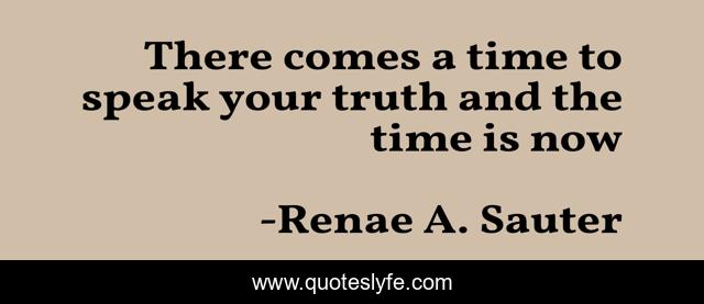 This page presents the quote "There comes a time to speak your truth and the time is now". Author of this quote is Renae A. Sauter. This quote is about motivation, personal-growth, positive, motivational, confidence, self-worth, optimistic, inspirational, personal-development,.