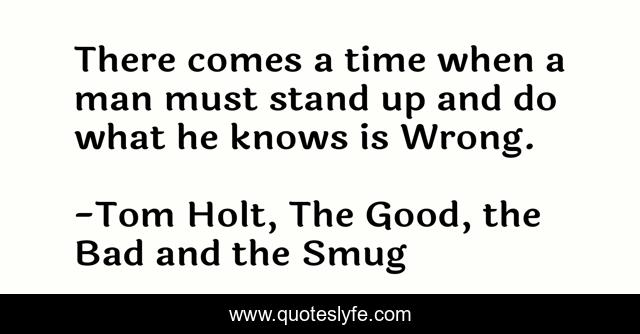 This page presents the quote "There comes a time when a man must stand up and do what he knows is Wrong.". Author of this quote is Tom Holt, The Good, the Bad and the Smug. This quote is about wrong, stand-up, man,.