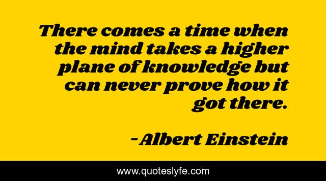 This page presents the quote "There comes a time when the mind takes a higher plane of knowledge but can never prove how it got there.". Author of this quote is Albert Einstein. This quote is about mind, time,.