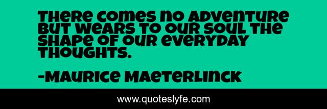 This page presents the quote "There comes no adventure but wears to our soul the shape of our everyday thoughts.". Author of this quote is Maurice Maeterlinck. This quote is about positive, confidence,.
