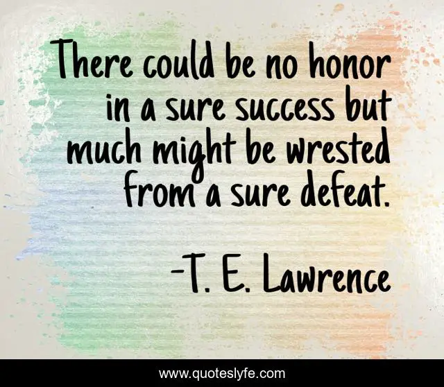This page presents the quote "There could be no honor in a sure success but much might be wrested from a sure defeat.". Author of this quote is T. E. Lawrence. .