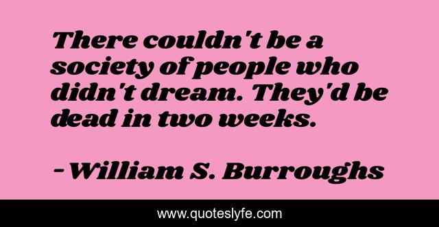 This page presents the quote "There couldn't be a society of people who didn't dream. They'd be dead in two weeks.". Author of this quote is William S. Burroughs. This quote is about dream, two, people,.