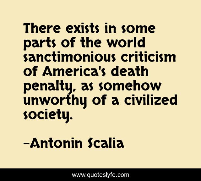 This page presents the quote "There exists in some parts of the world sanctimonious criticism of America's death penalty, as somehow unworthy of a civilized society.". Author of this quote is Antonin Scalia. This quote is about society, america, world,.