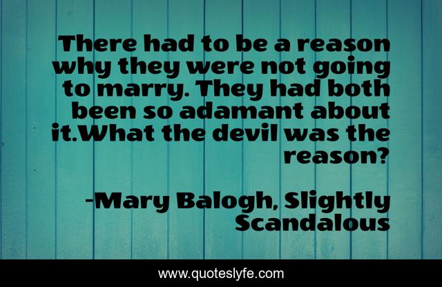 This page presents the quote "There had to be a reason why they were not going to marry. They had both been so adamant about it.What the devil was the reason?". Author of this quote is Mary Balogh, Slightly Scandalous. This quote is about reason, adamant,.