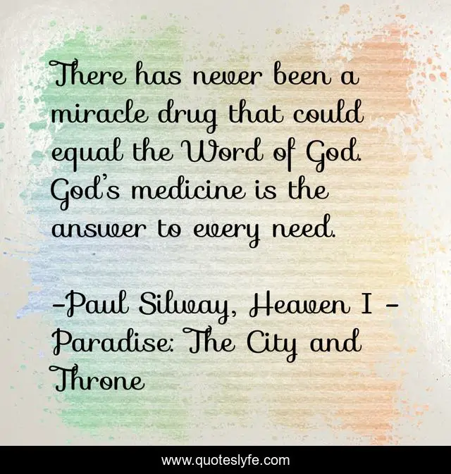 This page presents the quote "There has never been a miracle drug that could equal the Word of God. God’s medicine is the answer to every need.". Author of this quote is Paul Silway, Heaven I - Paradise: The City and Throne. .