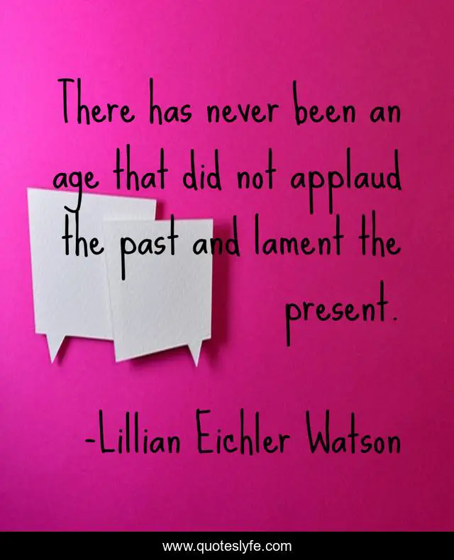 This page presents the quote "There has never been an age that did not applaud the past and lament the present.". Author of this quote is Lillian Eichler Watson. .