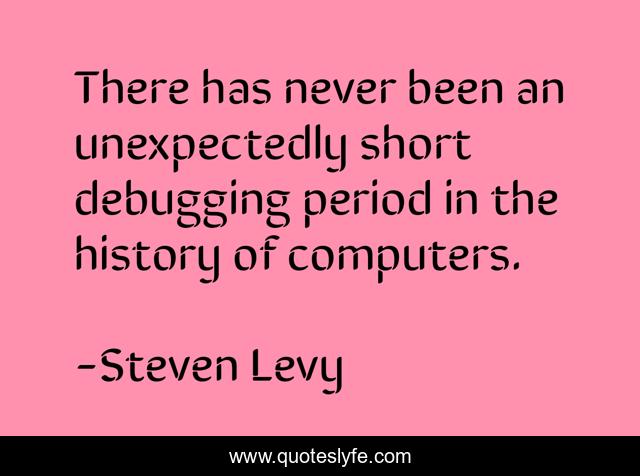 This page presents the quote "There has never been an unexpectedly short debugging period in the history of computers.". Author of this quote is Steven Levy. This quote is about short, history,.