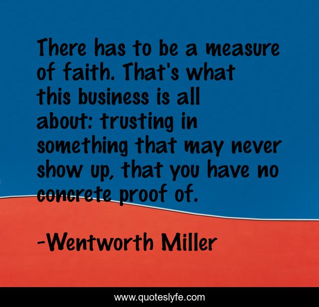 This page presents the quote "There has to be a measure of faith. That's what this business is all about: trusting in something that may never show up, that you have no concrete proof of.". Author of this quote is Wentworth Miller. This quote is about business, measure,.