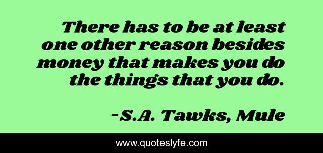 This page presents the quote "There has to be at least one other reason besides money that makes you do the things that you do.". Author of this quote is S.A. Tawks, Mule. This quote is about living, indonesia, bali, money,.