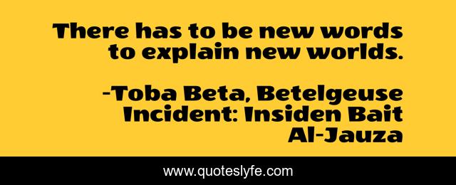 "Toba Beta, Betelgeuse Incident: Insiden Bait Al-Jauza Quotes." Quoteslyfe.com, 2025. Sun. 07 Dec. 2025. <https://www.quoteslyfe.com/quote/There-has-to-be-new-words-to-9665>.