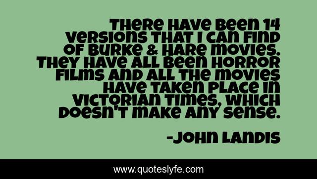 This page presents the quote "There have been 14 versions that I can find of Burke & Hare movies. They have all been horror films and all the movies have taken place in Victorian times, which doesn't make any sense.". Author of this quote is John Landis. This quote is about place, find, i can,.