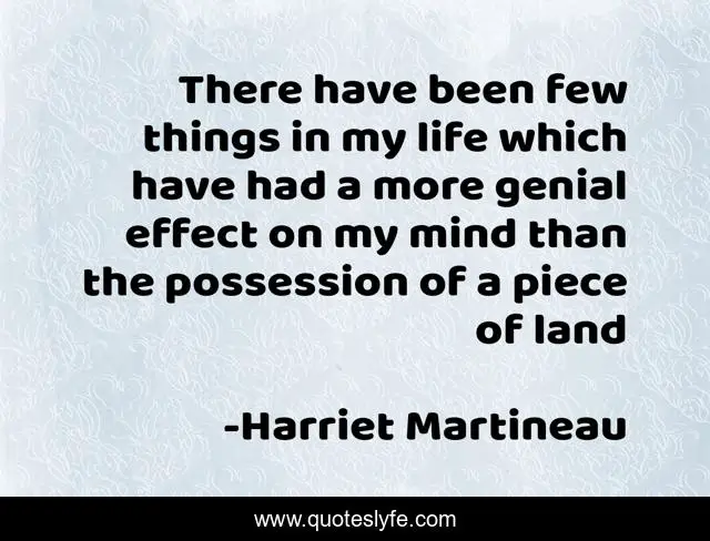 This page presents the quote "There have been few things in my life which have had a more genial effect on my mind than the possession of a piece of land". Author of this quote is Harriet Martineau. This quote is about business, real-estate,.