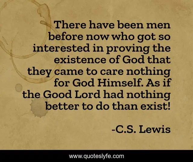 This page presents the quote "There have been men before now who got so interested in proving the existence of God that they came to care nothing for God Himself. As if the Good Lord had nothing better to do than exist!". Author of this quote is C.S. Lewis. This quote is about faith, christianity, religion,.