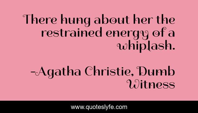 This page presents the quote "There hung about her the restrained energy of a whiplash.". Author of this quote is Agatha Christie, Dumb Witness. .