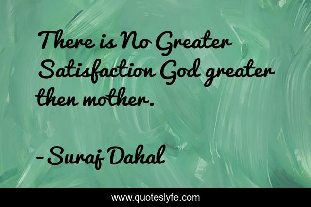 This page presents the quote "There is No Greater Satisfaction God greater then mother.". Author of this quote is Suraj Dahal. .