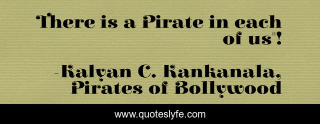 This page presents the quote "There is a Pirate in each of us"!". Author of this quote is Kalyan C. Kankanala, Pirates of Bollywood. This quote is about pirates, entertainment, piracy, legal, copyrights, bollywood, thriller,.