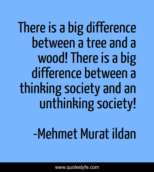 This page presents the quote "There is a big difference between a tree and a wood! There is a big difference between a thinking society and an unthinking society!". Author of this quote is Mehmet Murat ildan. .