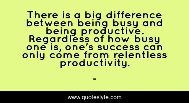 This page presents the quote "There is a big difference between being busy and being productive. Regardless of how busy one is, one's success can only come from relentless productivity.". Author of this quote is . This quote is about productivity, success, edmond-mbiaka, relentlessrelentless, there-is-a-big-difference, relentless,.