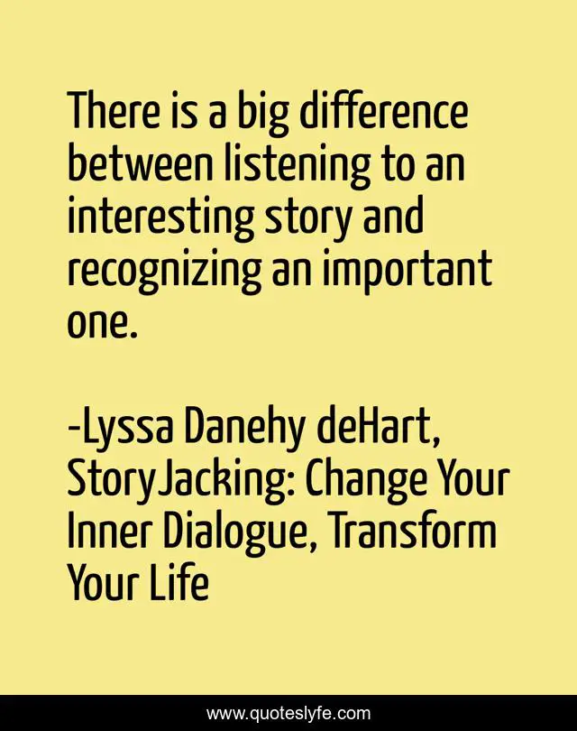 "Lyssa Danehy deHart, StoryJacking: Change Your Inner Dialogue, Transform Your Life Quotes." Quoteslyfe.com, 2025. Sat. 06 Dec. 2025. <https://www.quoteslyfe.com/quote/There-is-a-big-difference-between-listening-140585>.