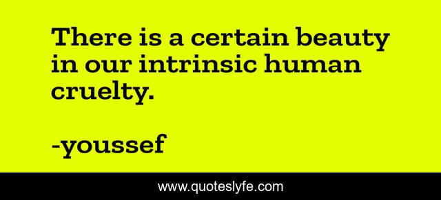 This page presents the quote "There is a certain beauty in our intrinsic human cruelty.". Author of this quote is youssef. This quote is about cruelty, human,.
