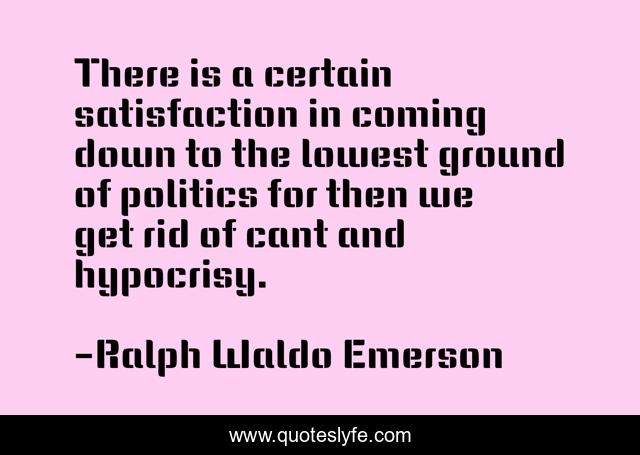 This page presents the quote "There is a certain satisfaction in coming down to the lowest ground of politics for then we get rid of cant and hypocrisy.". Author of this quote is Ralph Waldo Emerson. .
