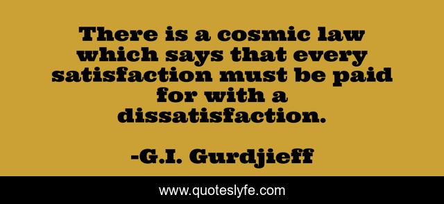This page presents the quote "There is a cosmic law which says that every satisfaction must be paid for with a dissatisfaction.". Author of this quote is G.I. Gurdjieff. .