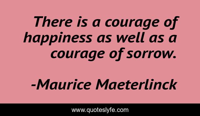 This page presents the quote "There is a courage of happiness as well as a courage of sorrow.". Author of this quote is Maurice Maeterlinck. .