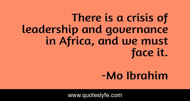 This page presents the quote "There is a crisis of leadership and governance in Africa, and we must face it.". Author of this quote is Mo Ibrahim. This quote is about africa, crisis, face,.