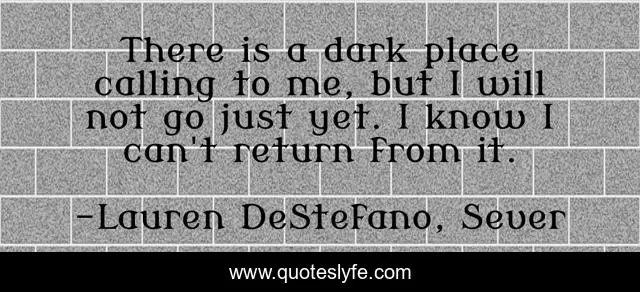 This page presents the quote "There is a dark place calling to me, but I will not go just yet. I know I can't return from it.". Author of this quote is Lauren DeStefano, Sever. This quote is about dark-places, despair,.