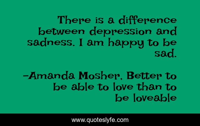 "Amanda Mosher, Better to be able to love than to be loveable Quotes." Quoteslyfe.com, 2025. Fri. 05 Dec. 2025. <https://www.quoteslyfe.com/quote/There-is-a-difference-between-depression-and-114039>.