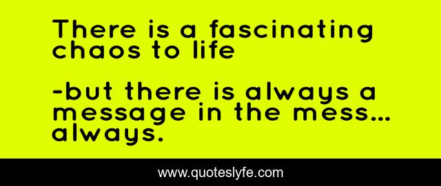 "but there is always a message in the mess... always. Quotes." Quoteslyfe.com, 2025. Fri. 05 Dec. 2025. <https://www.quoteslyfe.com/quote/There-is-a-fascinating-chaos-to-life-240566>.