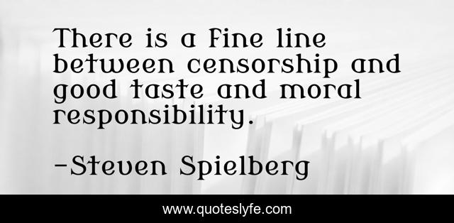 This page presents the quote "There is a fine line between censorship and good taste and moral responsibility.". Author of this quote is Steven Spielberg. This quote is about responsibility, moral,.