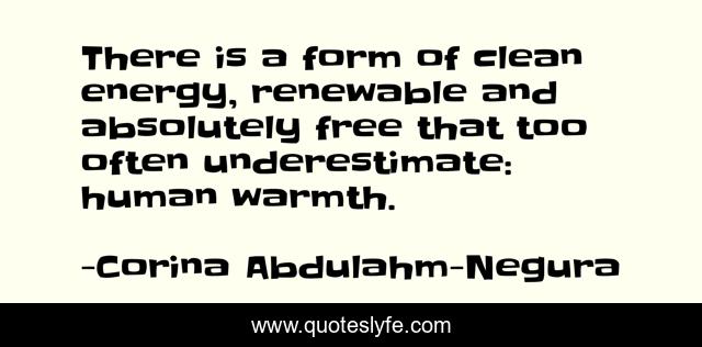 This page presents the quote "There is a form of clean energy, renewable and absolutely free that too often underestimate: human warmth.". Author of this quote is Corina Abdulahm-Negura. This quote is about energy, human-warmth, clean, renewable,.