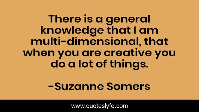This page presents the quote "There is a general knowledge that I am multi-dimensional, that when you are creative you do a lot of things.". Author of this quote is Suzanne Somers. .