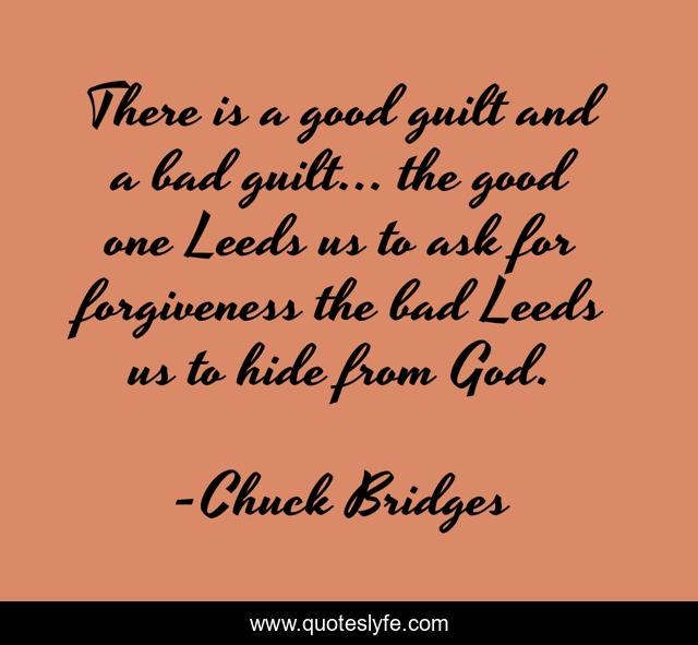 This page presents the quote "There is a good guilt and a bad guilt... the good one Leeds us to ask for forgiveness the bad Leeds us to hide from God.". Author of this quote is Chuck Bridges. .