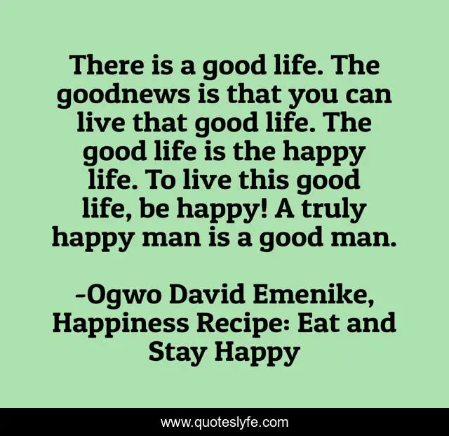"Ogwo David Emenike, Happiness Recipe: Eat and Stay Happy Quotes." Quoteslyfe.com, 2025. Sat. 06 Dec. 2025. <https://www.quoteslyfe.com/quote/There-is-a-good-life-The-goodnews-183378>.
