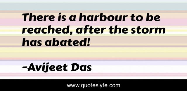 This page presents the quote "There is a harbour to be reached, after the storm has abated!". Author of this quote is Avijeet Das. This quote is about never-give-up-on-your-dreams, confidence, life-lessons, never-give-up-on-your-journey, positive, motivational, dont-quit, storms-of-life, storm,.