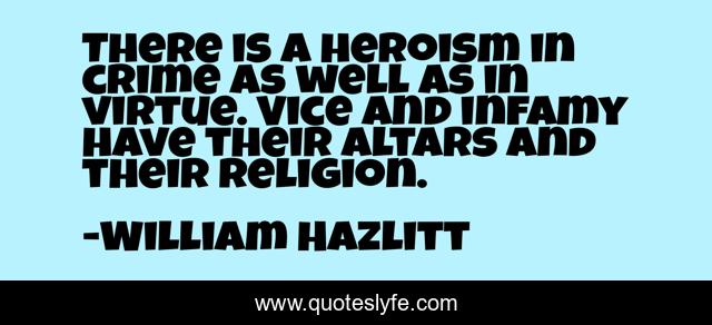 This page presents the quote "There is a heroism in crime as well as in virtue. Vice and infamy have their altars and their religion.". Author of this quote is William Hazlitt. This quote is about heroism, virtue, crime,.