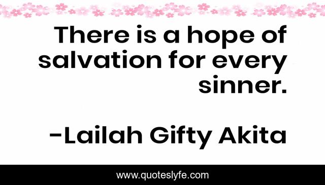 This page presents the quote "There is a hope of salvation for every sinner.". Author of this quote is Lailah Gifty Akita. This quote is about faith, christian, forgiveness, repentance, healing, salvation, grace, hope, sinner,.